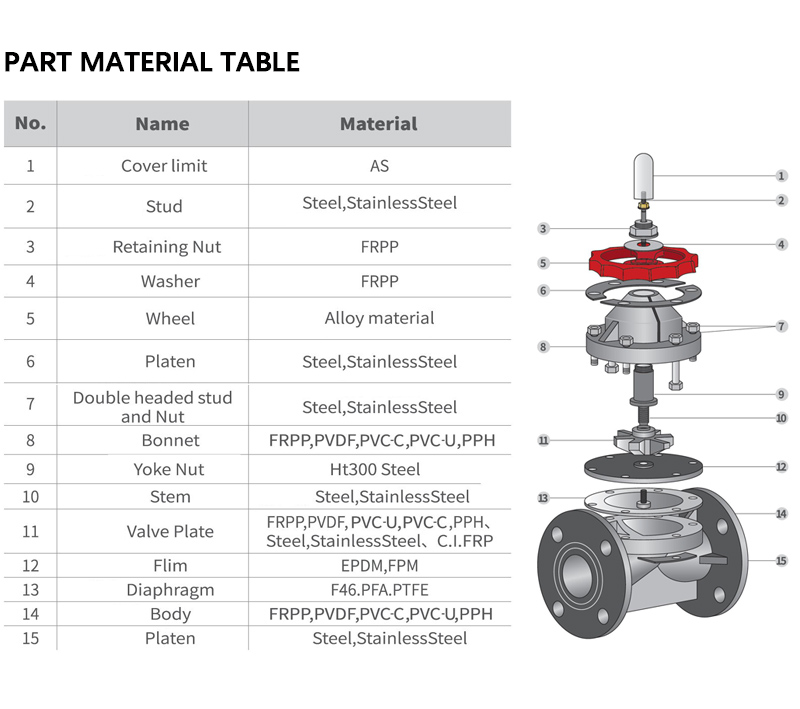1/2" - 12" (DN15-DN300)صمام غشائي مقاوم للتآكل