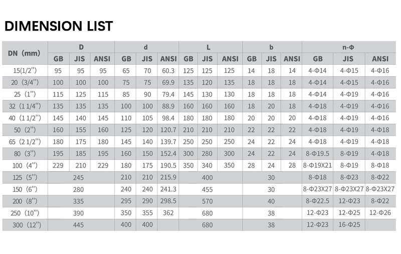 PN10/PN16/PN25/Class 125/Class 150/Class 300نطاق المقاسات :