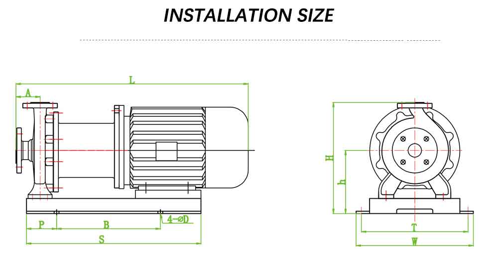 1.4" - 6" (DN40-DN150)مضخة مغناطيسية أفقية من الفولاذ المقاوم للصدأ