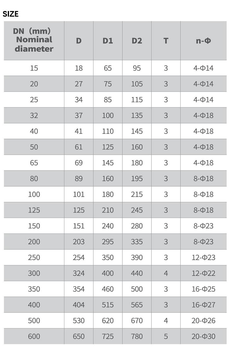 PN10/PN16/PN25/Class 125/Class 150/Class 300نطاق المقاسات :