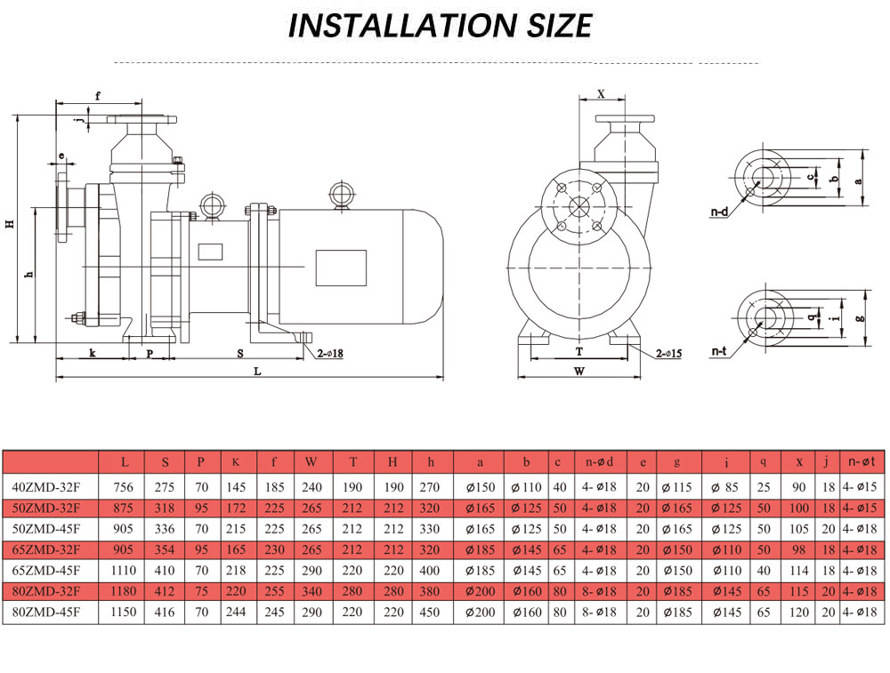 1.0" - 4" (DN25-DN100)مضخة مغناطيسية ذاتية التحضير مبطنة بالتفلون