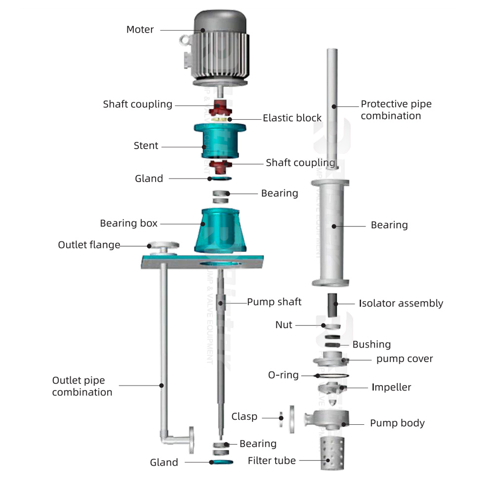 تتميز المضخات الكيميائية الغاطسة العمودية بمقاومة ممتازة للتآكل، وتصميم عمودي مضغوط، وتشغيل مستمر مستقر، مما يجعلها مثالية لنقل المواد الكيميائية العدوانية مباشرة من الخزانات أو الحفر بأقل مساحة وصيانة.